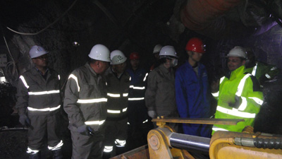 唐董事長和王總經理深入到引水隧洞進口段、出口段施工掌子面,詳細了解了進口段TBM掘進、設備狀況和當前存在的問題,以及出口段旁通洞、TBM改造洞室開挖掘進情況。他們要求進口段承包人進一步加強技術力量,及時查找設備故障原因并予以迅速解決,堅持穩(wěn)中求進,逐步將設備調整到最佳狀態(tài),并要提前做好易損易壞配件采購和儲備工作,確保TBM正常運行。同時,針對出口段參建各方強調要在確保安全的前提下,統(tǒng)籌安排,改進組織協調,切實加快施工進度。