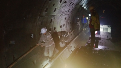 檢查組在察看調(diào)水總干渠出口段工區(qū)后,乘小型軌道車穿越引水隧洞全線,利用三個(gè)多小時(shí)時(shí)間,對(duì)施工掌子面現(xiàn)場(chǎng)的安全設(shè)施運(yùn)行狀態(tài),以及豆礫石回填灌漿、混凝土襯砌、鋼拱架安裝及缺陷處理等施工情況進(jìn)行細(xì)致檢查,了解隧洞出口段F4/F5斷層帶管片變形段施工處理情況,對(duì)各施工單位進(jìn)一步合理分工,加強(qiáng)協(xié)調(diào)配合,強(qiáng)化現(xiàn)場(chǎng)管理,狠抓安全質(zhì)量,加快推進(jìn)工程建設(shè)提出了具體要求。