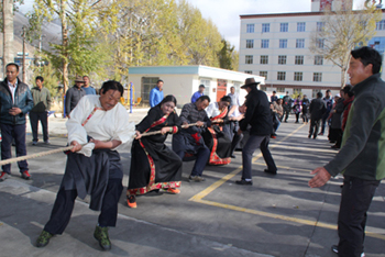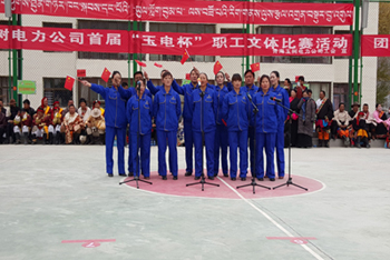 10月23日上午9點(diǎn),伴隨著雄壯高亢的《運(yùn)動(dòng)員進(jìn)行曲》,青海玉樹(shù)電力公司11支職工代表隊(duì)的參賽選手組成整齊有序的方陣,邁著矯健的步伐步入賽場(chǎng)。公司黨委書(shū)記、總經(jīng)理白瑪然丁致開(kāi)幕辭,他指出:為進(jìn)一步樹(shù)立玉樹(shù)電力公司的良好形象,加大公司企業(yè)文化建設(shè)力度,促進(jìn)公司精神文明建設(shè),決定恢復(fù)因玉樹(shù)地震停辦五年之久的職工文體競(jìng)賽活動(dòng),通過(guò)舉辦本屆“玉電杯”文體競(jìng)賽活動(dòng),要加快構(gòu)建健康、文明、和諧、向上的公司文化氛圍,豐富廣大干部職工的業(yè)余生活,為大家提供一個(gè)充分展示自己特長(zhǎng)和才華的平臺(tái),讓大家在活動(dòng)中體驗(yàn)合作與創(chuàng)造,體驗(yàn)成功與歡樂(lè),從而提高自己的綜合素養(yǎng),成為公司發(fā)展的有用人才;要著力促使單位之間、職工之間更加團(tuán)結(jié)、更加和諧,更具凝聚力,著力提高干部職工的團(tuán)隊(duì)精神理念,增強(qiáng)干部職工的集體榮譽(yù)感,增強(qiáng)職工的凝聚力和向心力,促進(jìn)公司的生產(chǎn)經(jīng)營(yíng)發(fā)展;要初步選拔出優(yōu)秀人才組建公司文藝、體育隊(duì)伍,以代表公司參加集團(tuán)公司、上級(jí)有關(guān)單位和部門(mén)舉辦的各項(xiàng)文體活動(dòng),塑造公司良好形象。隨后,玉樹(shù)州總工會(huì)副主席焦海寧宣布首屆“玉電杯”職工文體比賽活動(dòng)開(kāi)幕。