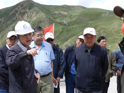 (玉電) 7月的玉樹,正值災(zāi)后重建如火如荼進(jìn)行之際,水利部副部長胡四一、民盟中央副主席索麗生、水利部總工程師江洪、水利部長江委主任蔡其華等一行53人組成的黃河河源區(qū)保護(hù)專題調(diào)研團(tuán),蒞臨青海水電集團(tuán)玉樹禪古電站水庫調(diào)研。