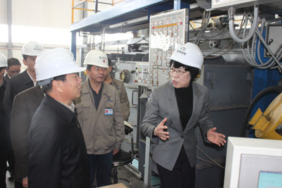 蘇寧同志一行首先來到青海水電集團(tuán)下屬青海聚能鈦業(yè)有限公司,登上電子束冷床(EB爐),仔細(xì)察看設(shè)備運(yùn)行和鈦錠熔鑄過程,詢問工藝流程、熔煉技術(shù)情況,了解鈦行業(yè)發(fā)展前景,體驗(yàn)一線工人的作業(yè)環(huán)境,并與職工及外籍技術(shù)人員一一握手交談,詢問他們的生活、工作及收入等情況,鼓勵(lì)他們?cè)俳釉賲?,為企業(yè)和社會(huì)經(jīng)濟(jì)的發(fā)展添磚加瓦。