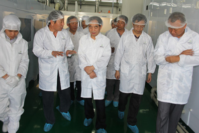 在潔凈明亮的現(xiàn)代化車間內(nèi),駱玉林副省長一行參觀了聚能電力一期50MW太陽能電池片生產(chǎn)流水線作業(yè)以及首批試生產(chǎn)太陽能電池片,仔細詢問和了解了工藝流程、設(shè)備性能、人員配備和產(chǎn)品技術(shù)指標(biāo)等情況,并聽取了青海水電集團董事長唐增科、總經(jīng)理王海青以及聚能電力負(fù)責(zé)同志關(guān)于項目建設(shè)、存在主要問題等情況的匯報。駱副省長對我公司項目建設(shè)及生產(chǎn)情況給予了充分肯定。他強調(diào),由于受國際太陽能大環(huán)境影響,我國太陽能及光伏產(chǎn)業(yè)發(fā)展遇到了前所未有的困難,希望聚能電力及其上級單位緊緊把握我省新能源產(chǎn)業(yè)發(fā)展的有利時機,立足本身、迎難而上,積極尋求市場,加大技術(shù)革新力度,不斷促進企業(yè)健康穩(wěn)定發(fā)展。 (文:陳宏 圖:馬東海