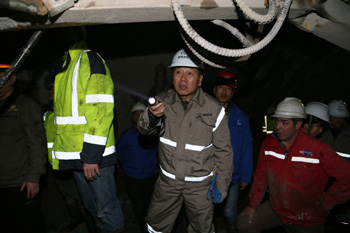 慰問期間,集團(tuán)領(lǐng)導(dǎo)一行乘坐軌道車深入到距離洞口7.4km的輸水隧洞出口段施工現(xiàn)場,仔細(xì)察看了TBM維修當(dāng)前開挖掌子面巖性和主洞、旁通洞第三段人工鉆爆施工狀況,要求參建各方加強(qiáng)溝通協(xié)調(diào),縝密安排施工計(jì)劃,強(qiáng)化現(xiàn)場管理,高度重視安全工作,切實(shí)加快施工進(jìn)度和TBM改造工作,合理規(guī)劃,統(tǒng)籌兼顧,為TBM盡早啟動(dòng)掘進(jìn)創(chuàng)造條件。